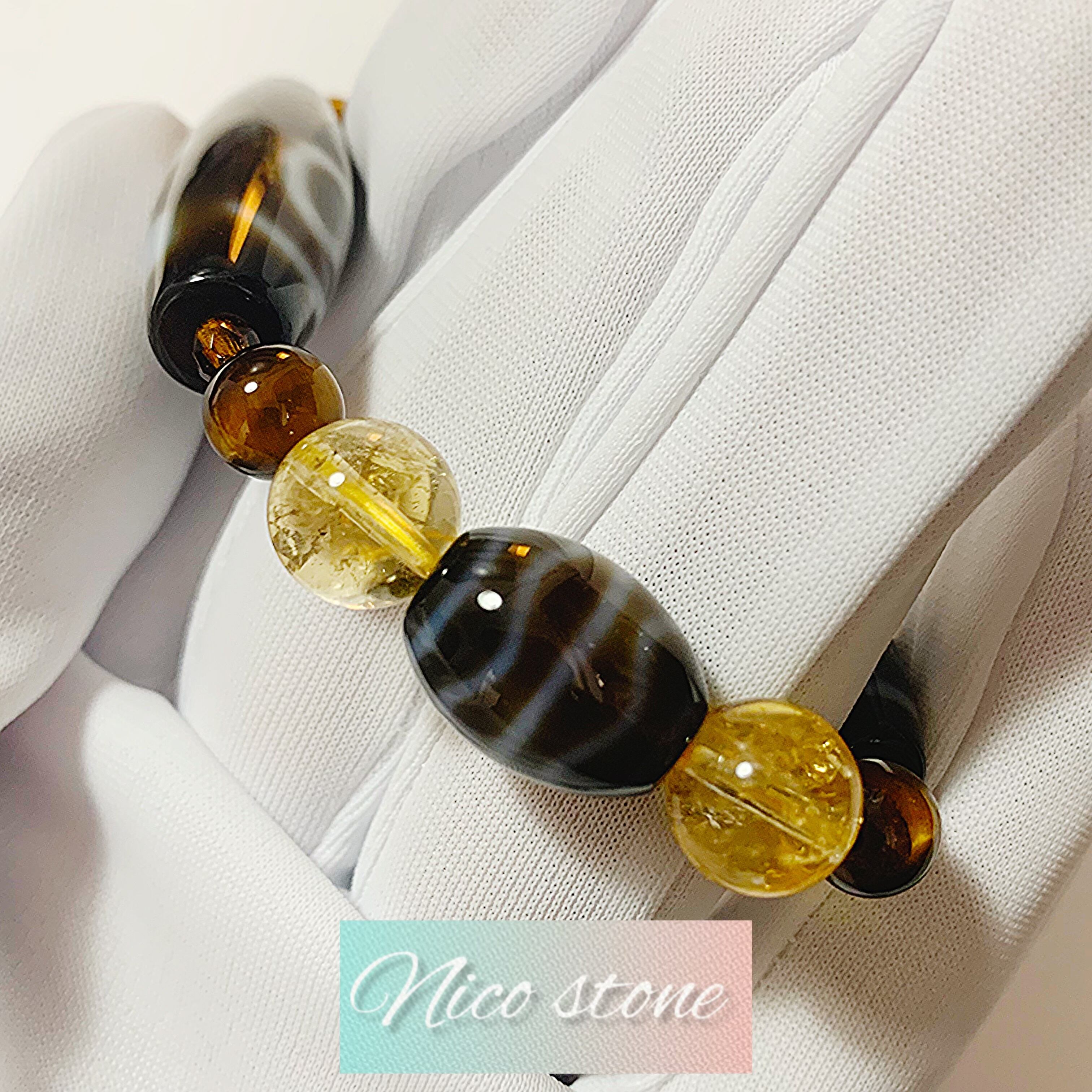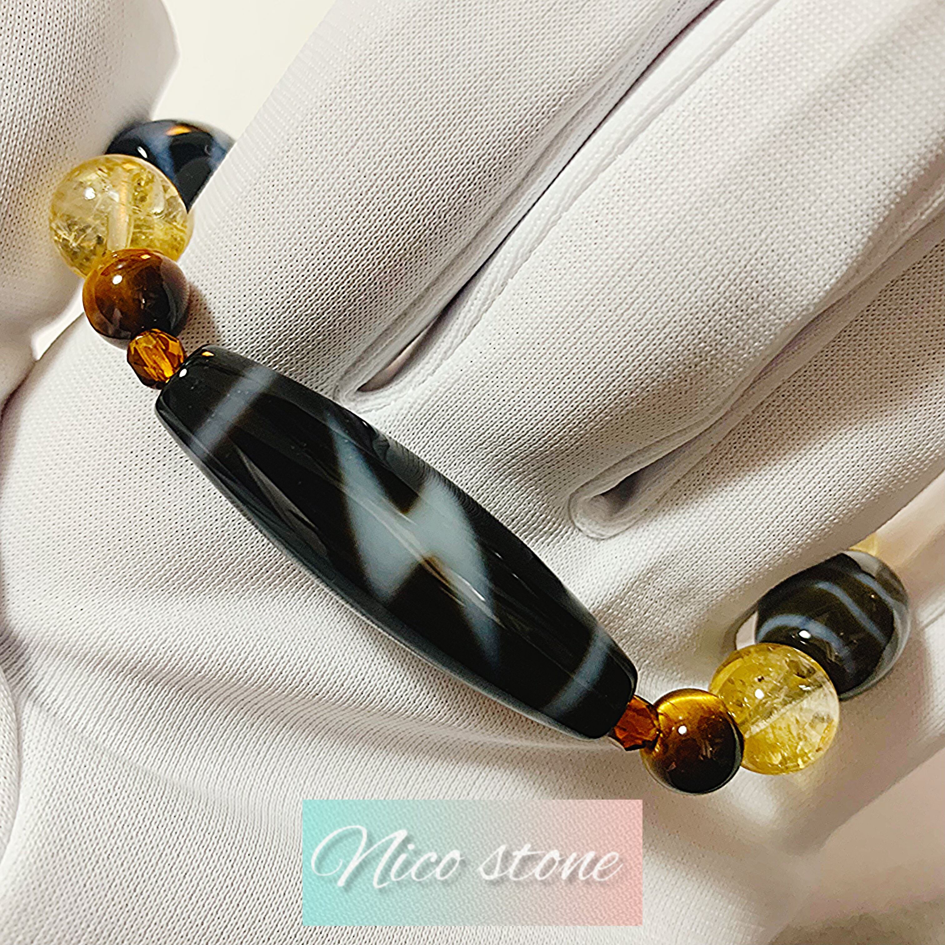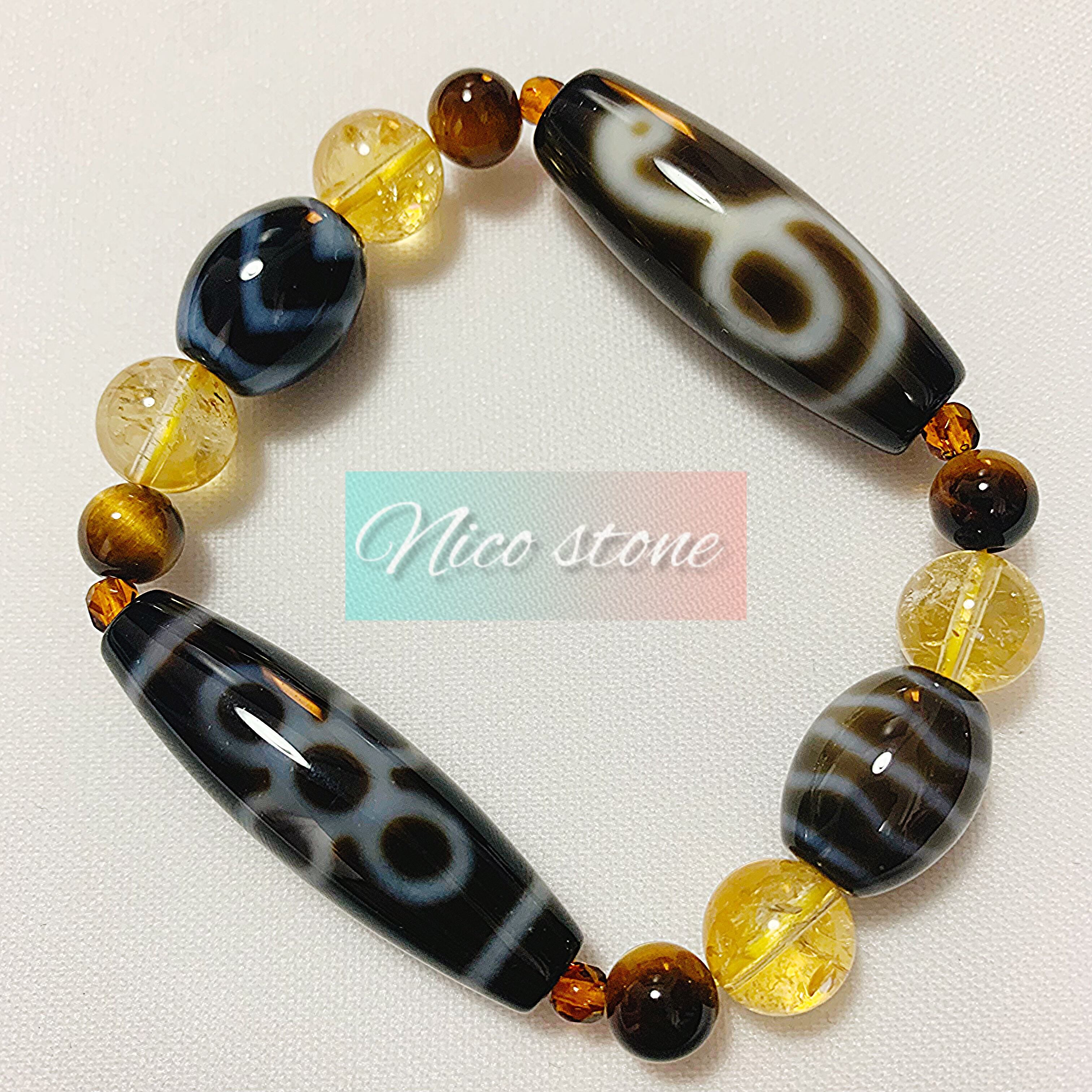 三面大黒天・白蛇天珠、閃電五眼天珠、水紋虎牙天珠、水紋天珠ブレスレット
