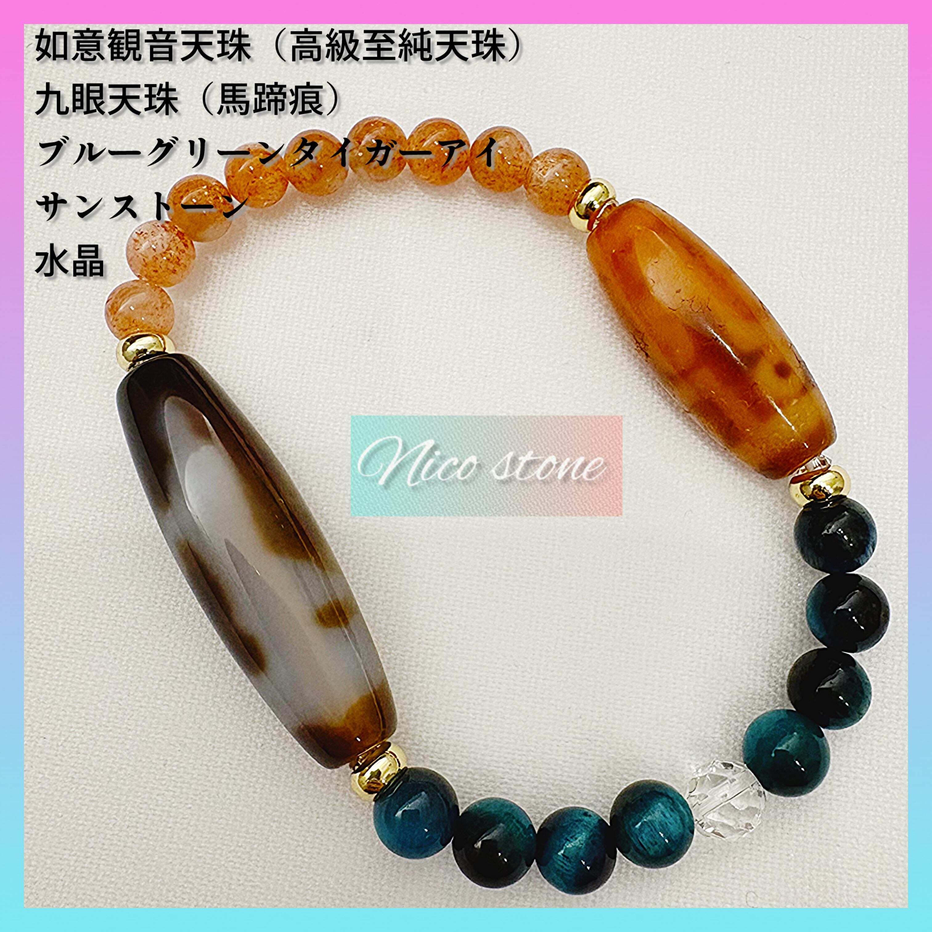 ③ 如意観音天珠(高級至純天珠)・九眼天珠(馬蹄痕天珠)ブレスレット