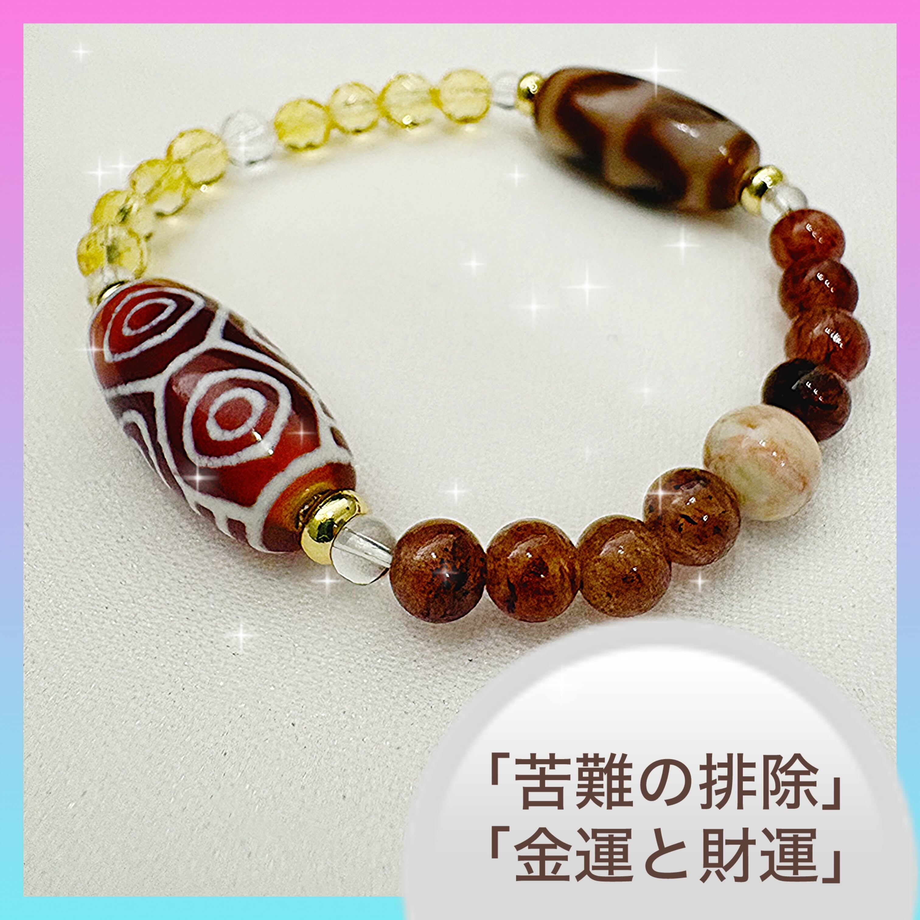 天珠の王とも呼ばれ強いパワーが人気の天珠です。苦難を排除し喜びを運び大きな財運をもたらすと言われています。