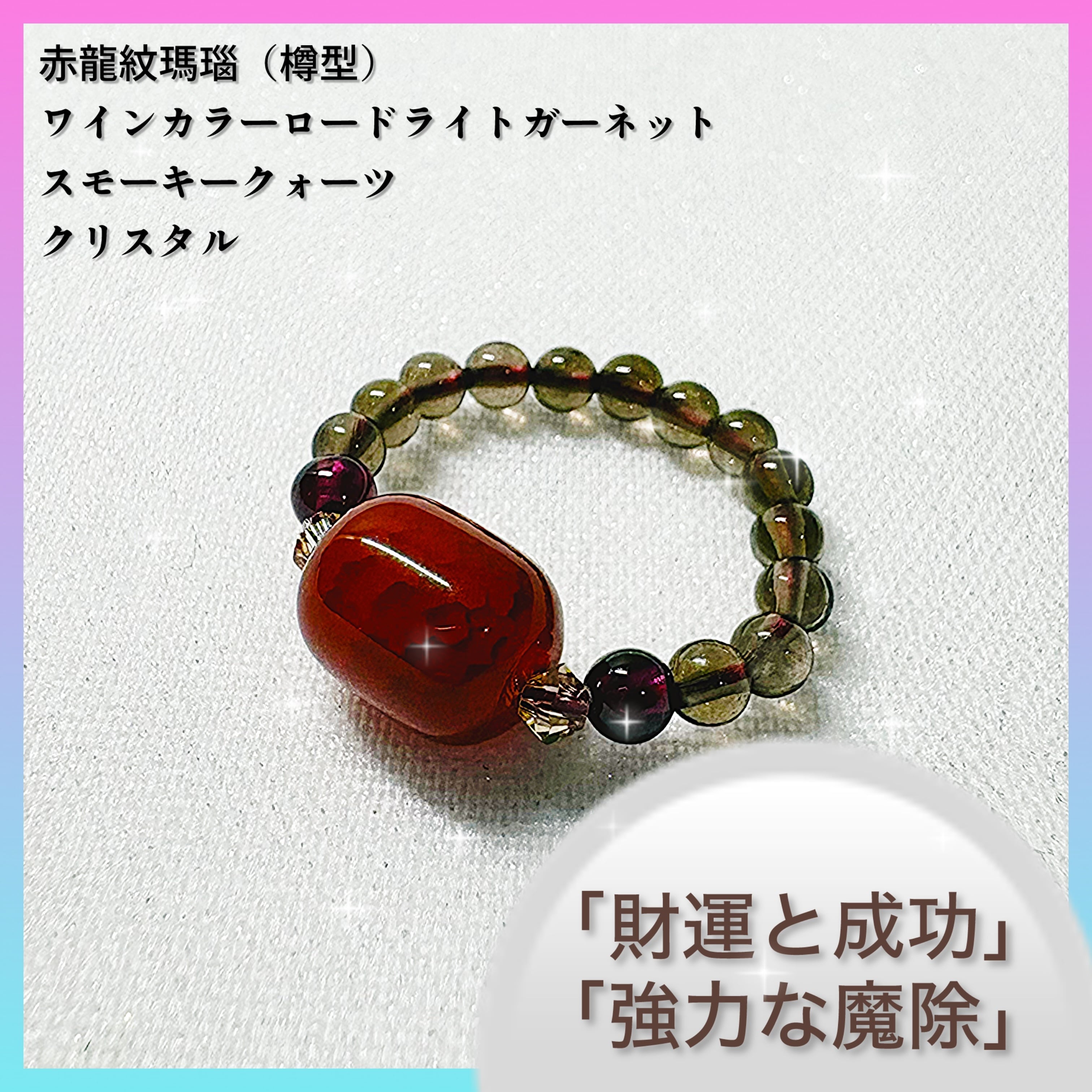 【tanikei様専用】赤龍紋瑪瑙天珠リング|強力な魔除け、財運と成功のお守りに