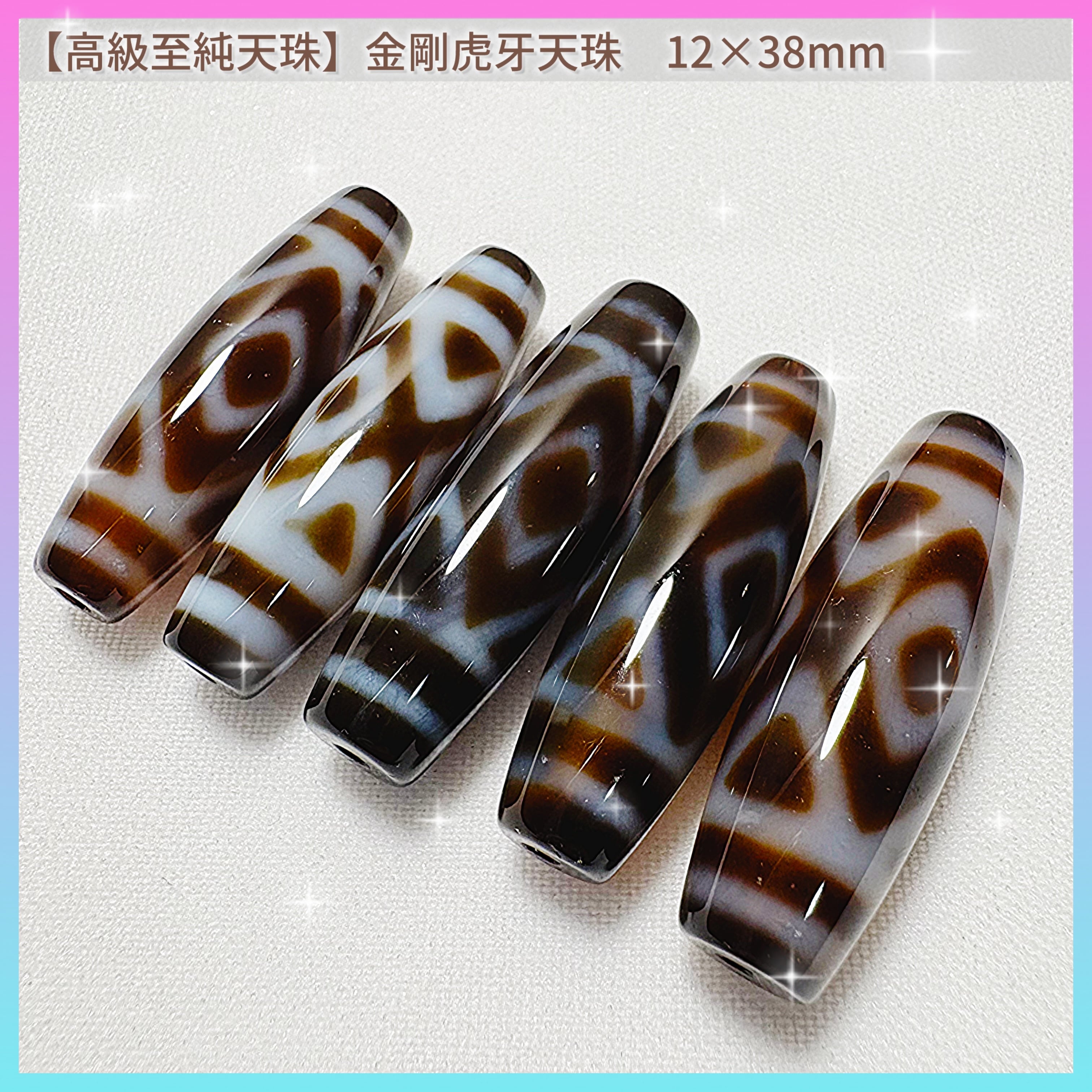 【高級至純天珠】金剛虎牙天珠 12×38mm|魔除け・勝負運・不運を打ち砕く強力な守護石