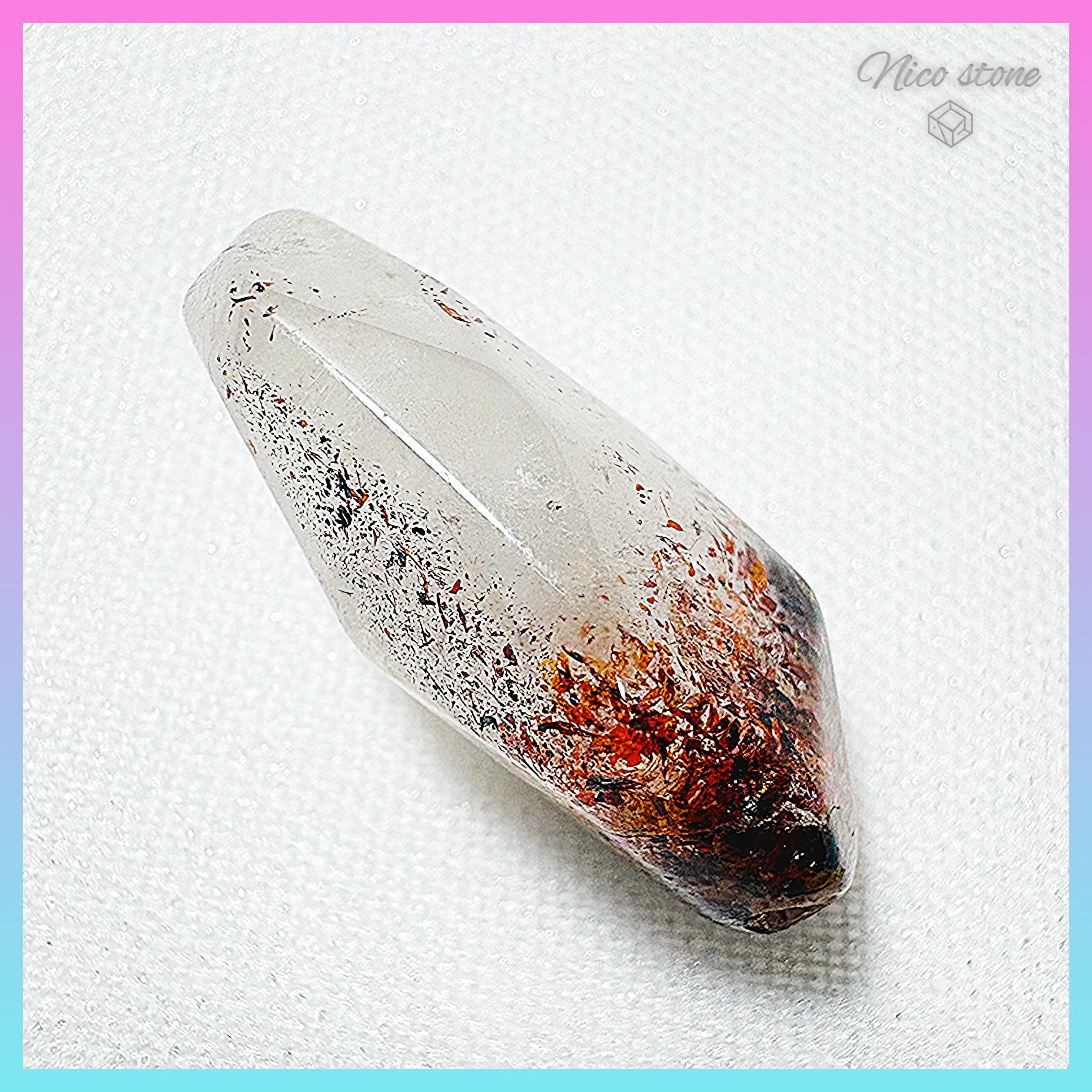 【鮮やかな赤】ファイアークォーツ(レピドクロサイト・インクォーツ) ラフ多面カット 26mm 一点物