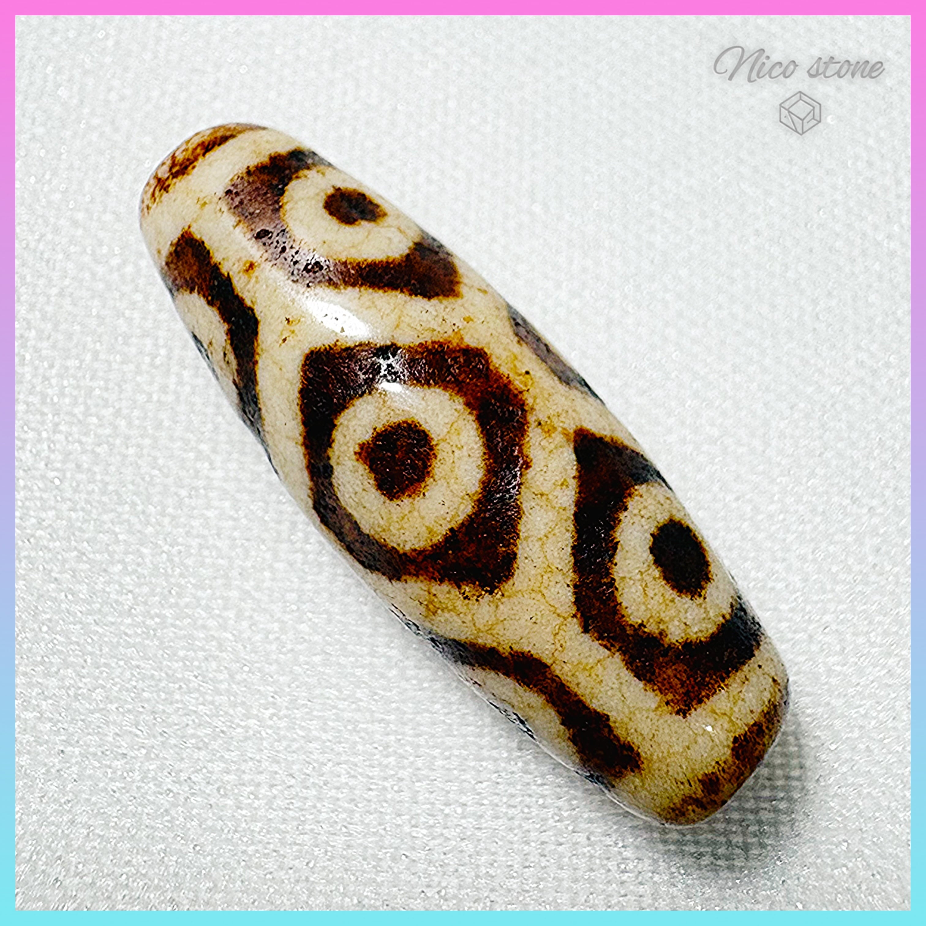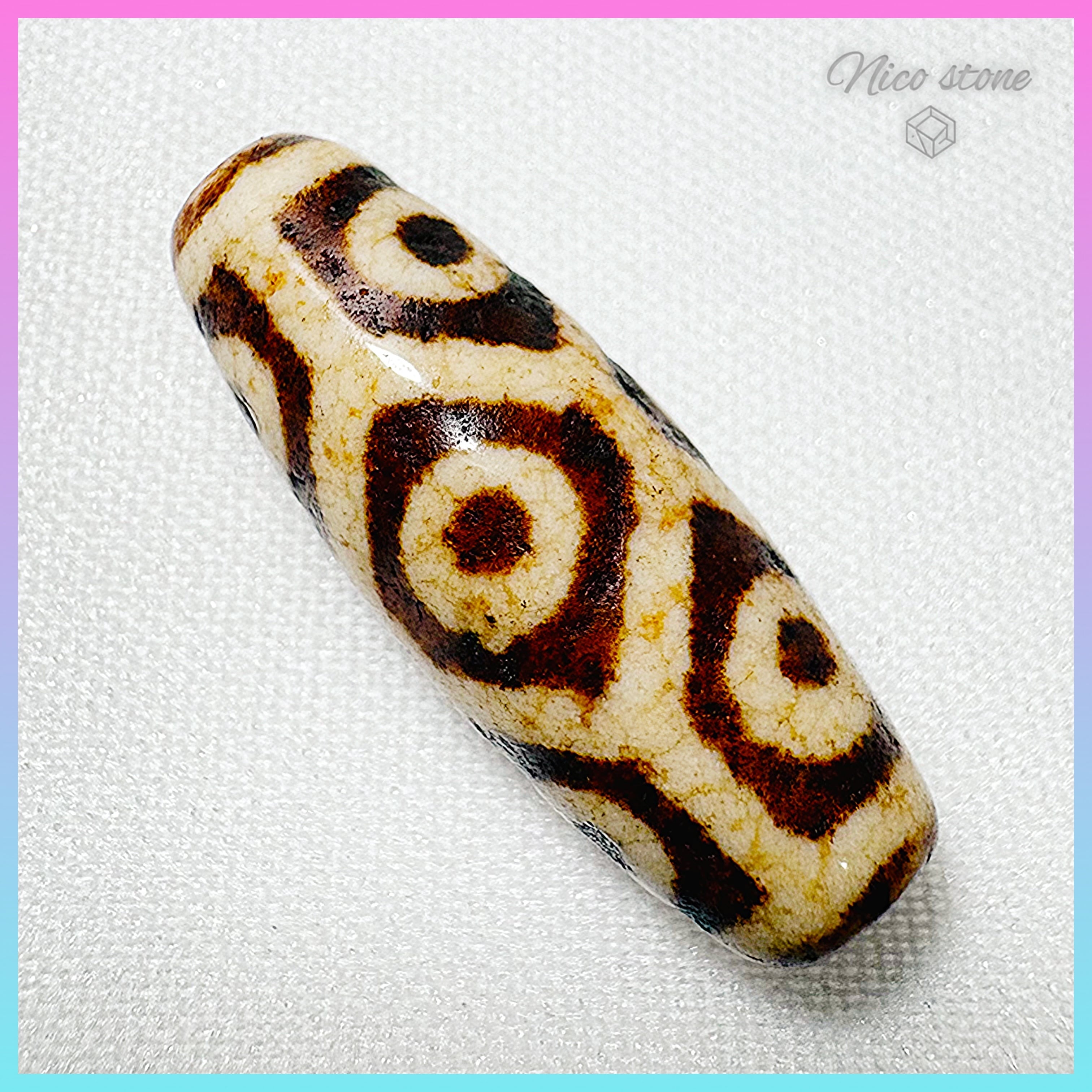 【希少・上肯製】龍紋亀甲九眼天珠(約31mm×11mm)至純天珠 天然石 ニコストーン