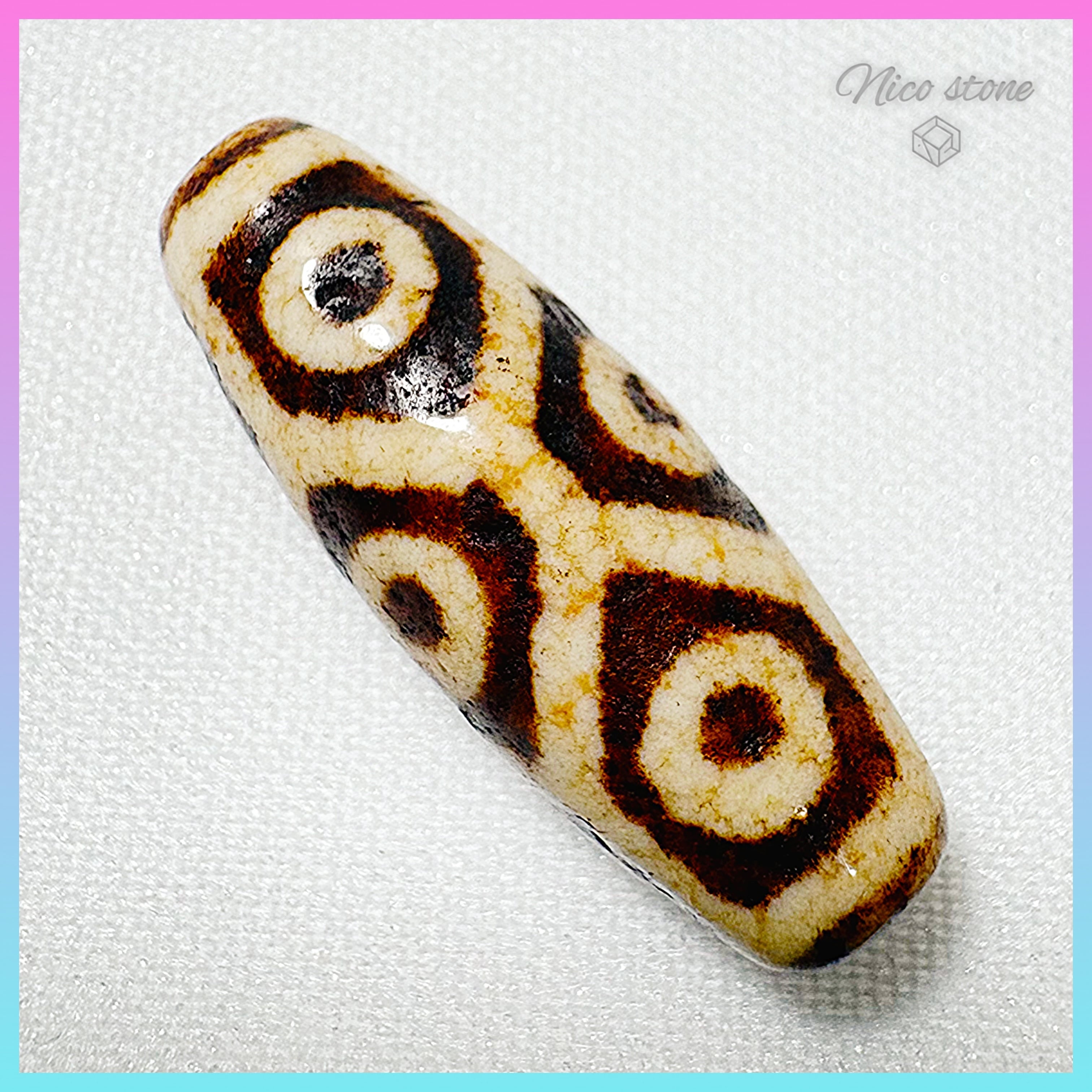 • 九眼紋: 数ある天珠の中でも「最強」と称される紋様。密教の九字護身法に通じ、権威を高め、予期せぬ利益をもたらし、立身出世をサポートすると言われています。