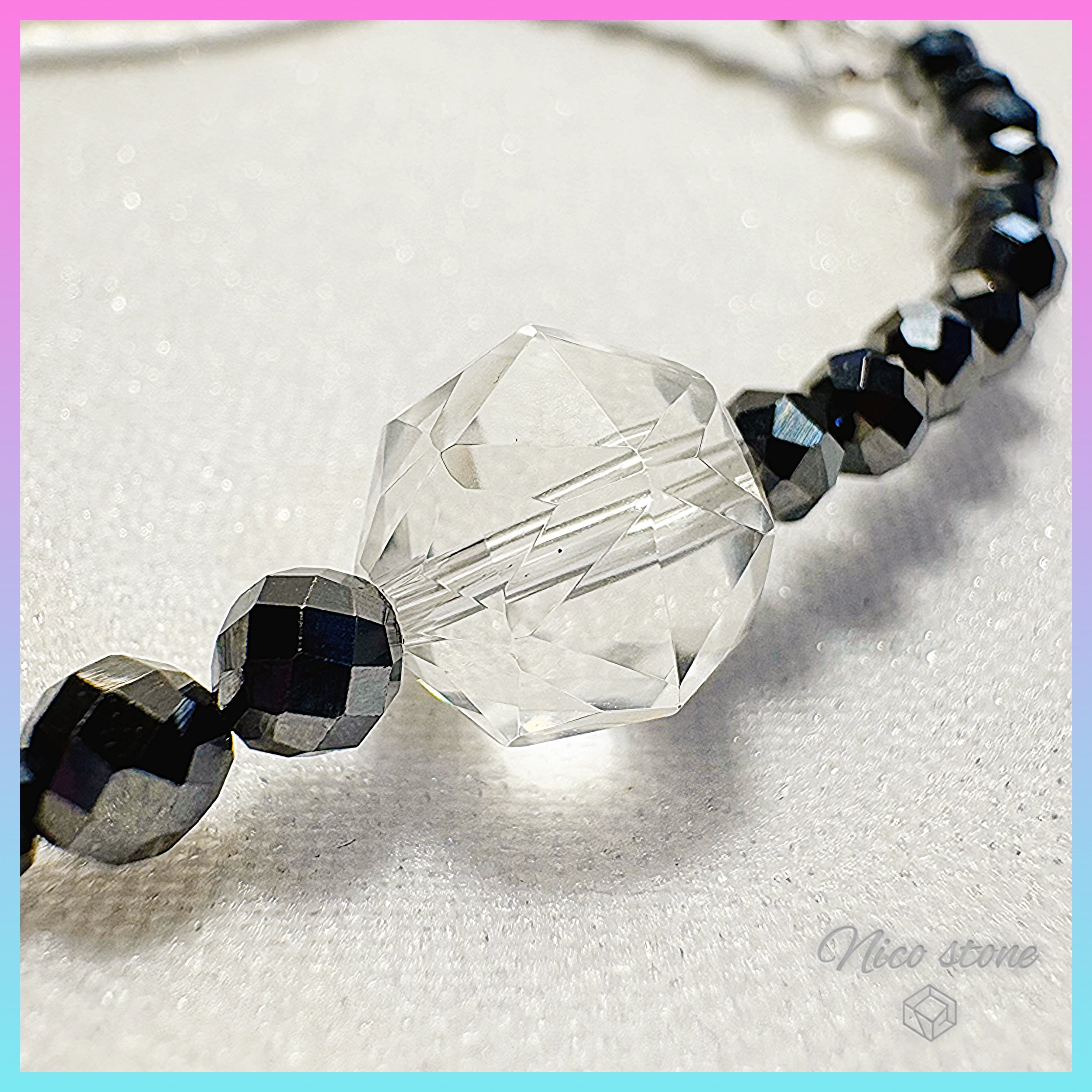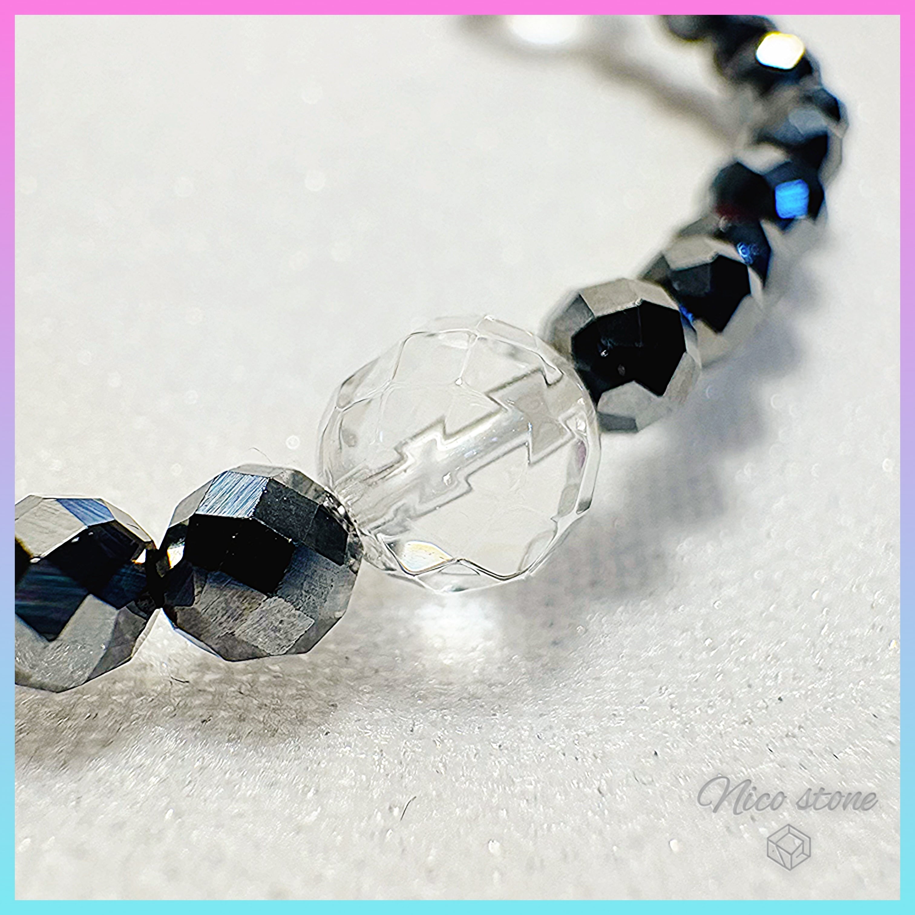 • 水晶(スターカット・64面カット): 異なる2種類のカットを施すことで、光の反射に奥行きを出しました。全体を浄化し、エネルギーを調和させます。