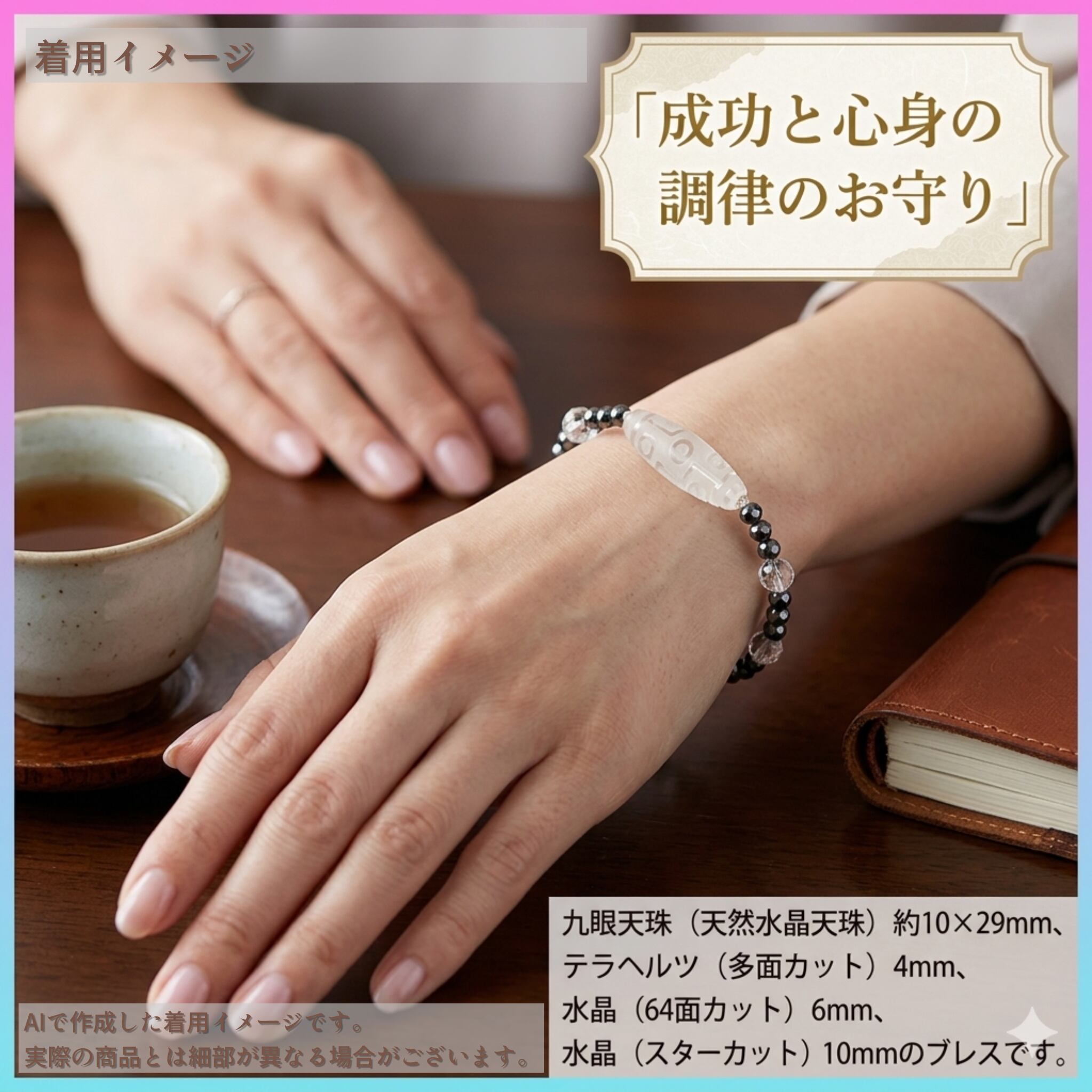 【九眼天珠×テラヘルツ】至高の権威とスマートな癒やし - 天然水晶天珠ブレスレット