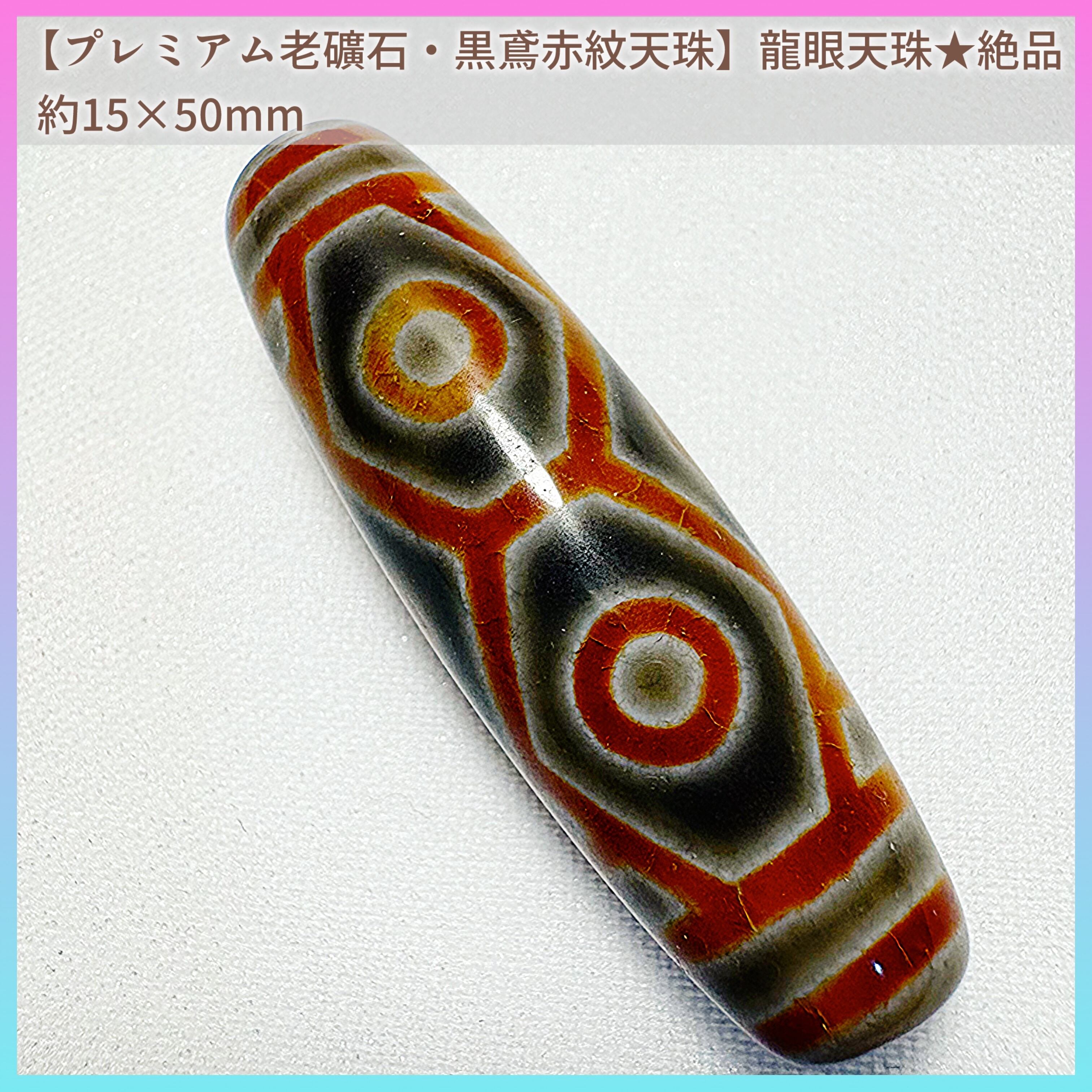 【天珠の王・至高の逸品】プレミアム老礦石 龍眼天珠 15×50mm(黒鳶赤紋) 〜龍の眼光が宿る守護石〜