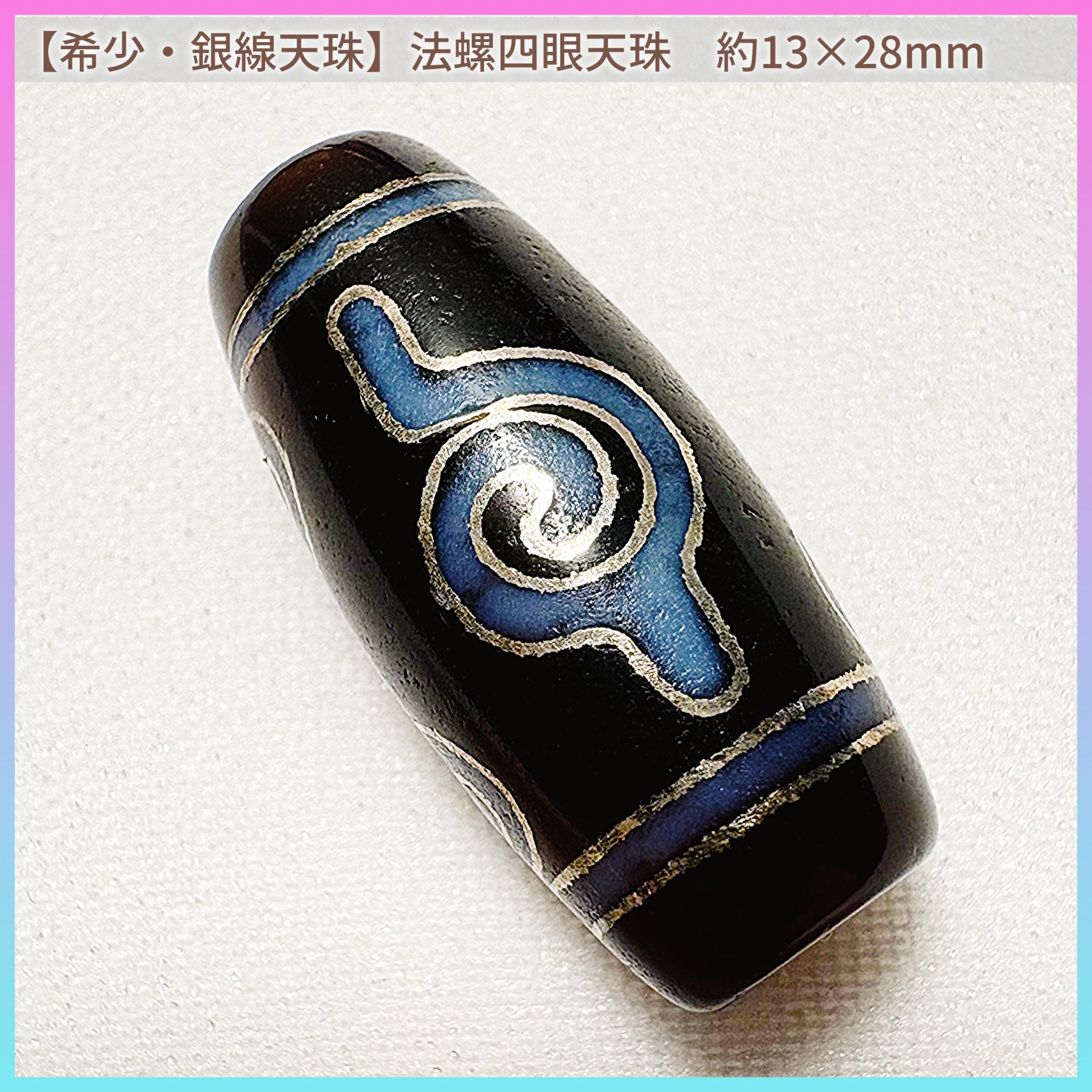 【希少・銀線天珠】法螺四眼天珠(ほうらよんがん) 約13mm×28mm|至純西蔵天珠|法螺貝の守護と知恵の四眼