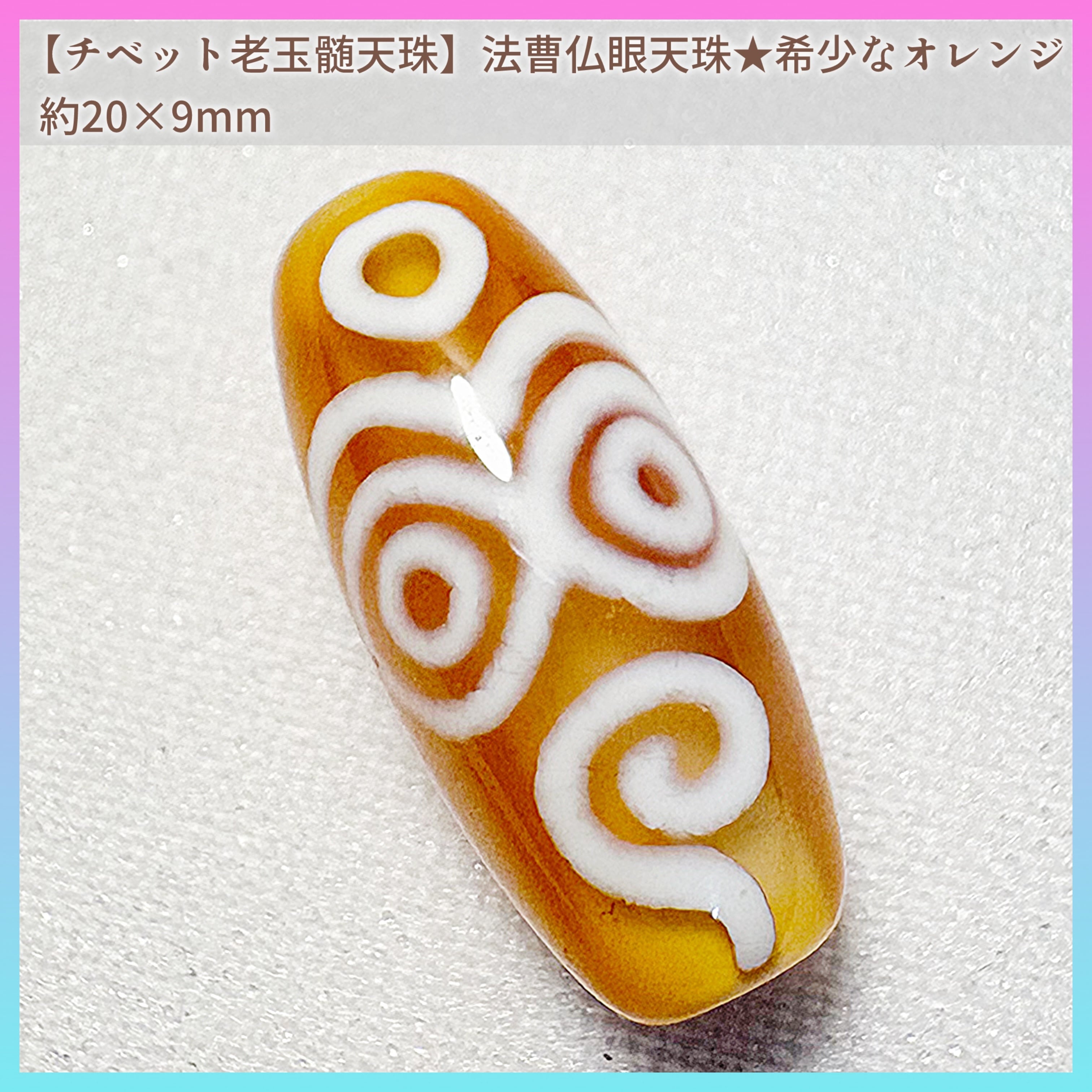 【極上一点物】チベット老玉髄 法曹仏眼天珠 ★希少オレンジカラー★ 紋様美 約20×9mm