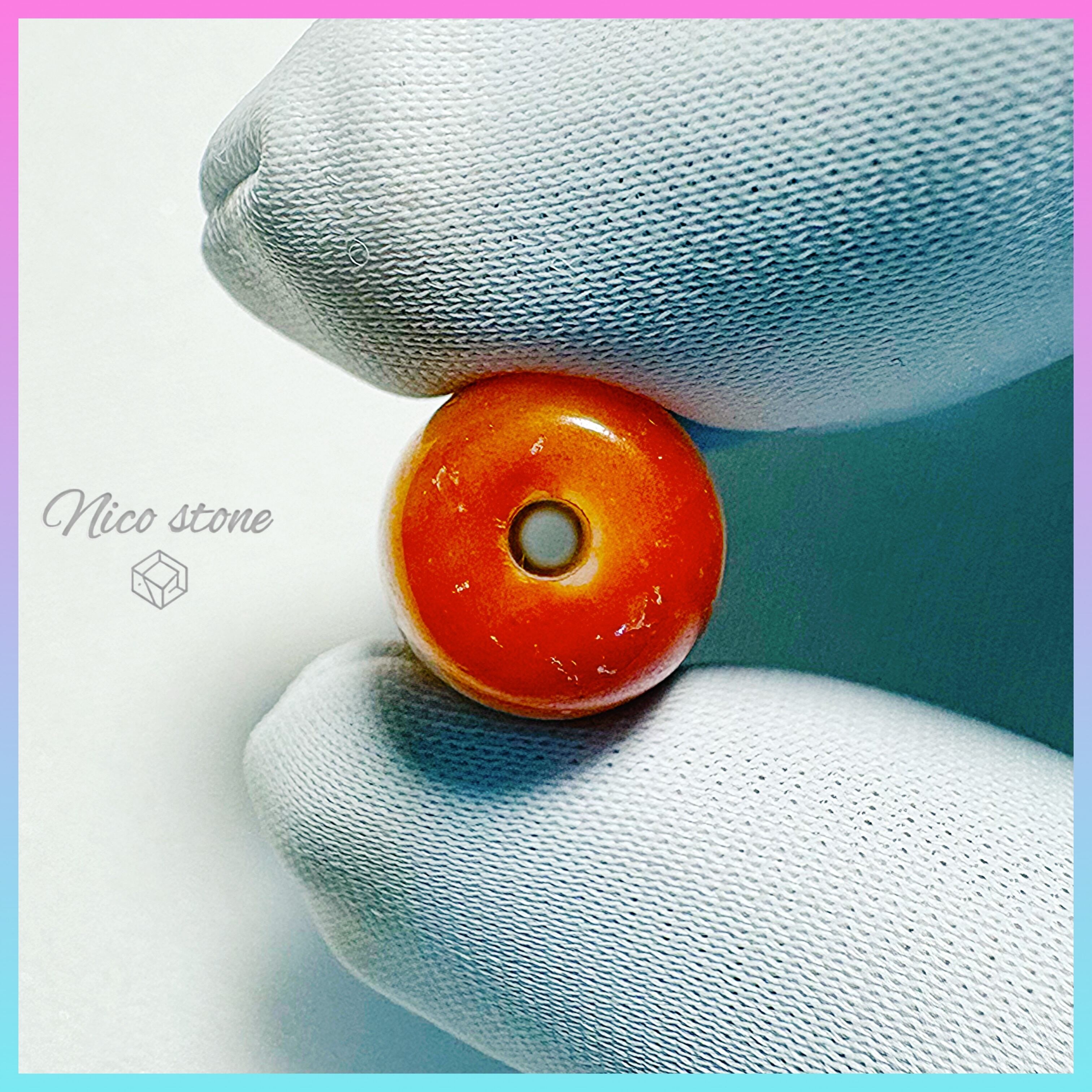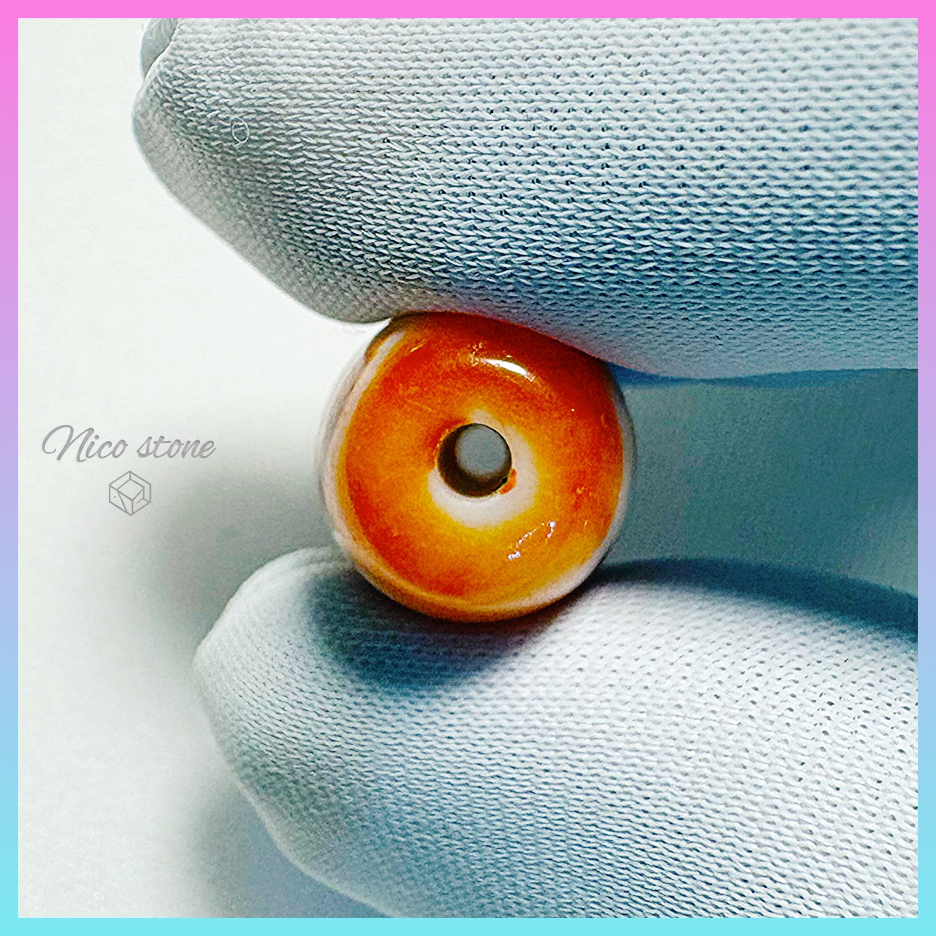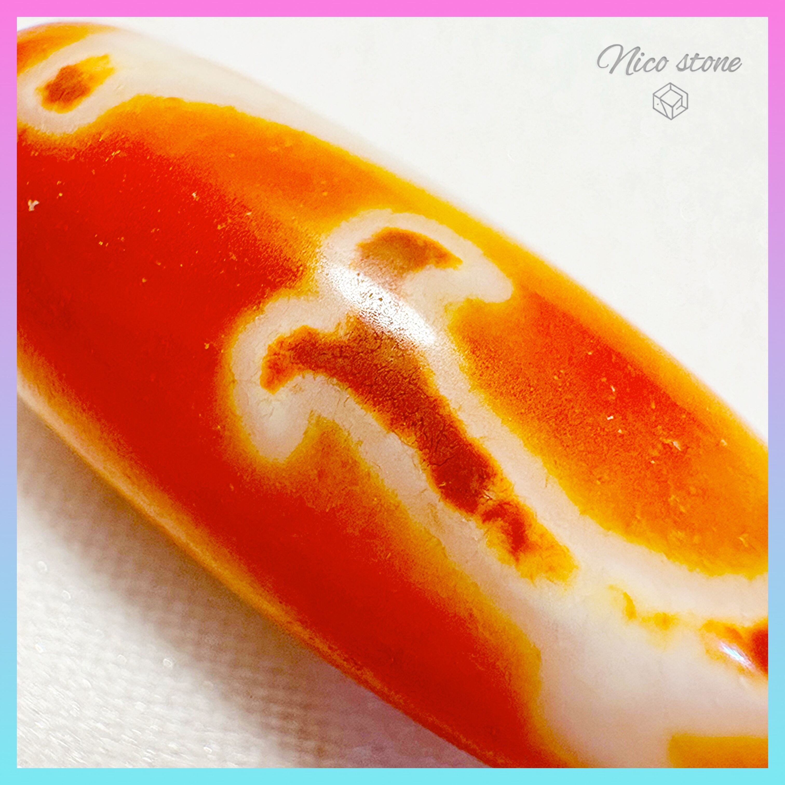 この天珠には、表面に赤い斑点状の「朱砂」が見て取れます。朱砂が現れる天珠は非常にパワーが強いとされ、さらに価値が高まります。