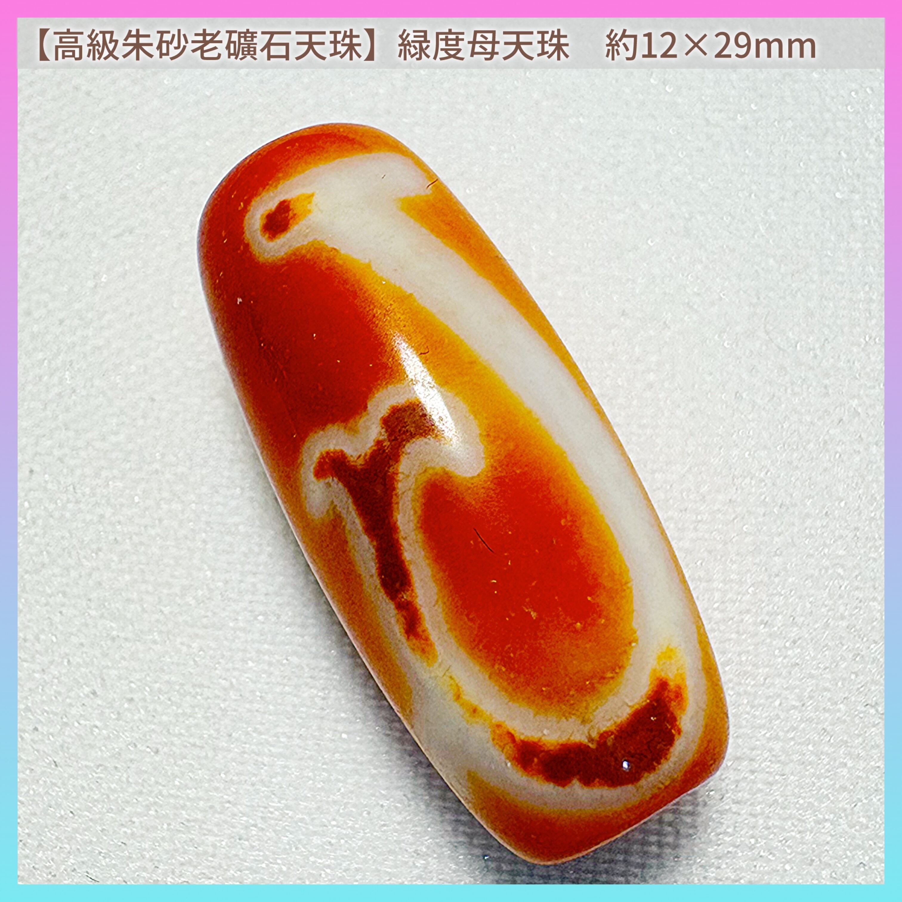 【最高級 老礦天珠】朱砂老礦石 緑度母天珠(約12mm×29mm)慈愛と救済の女神 希少品
