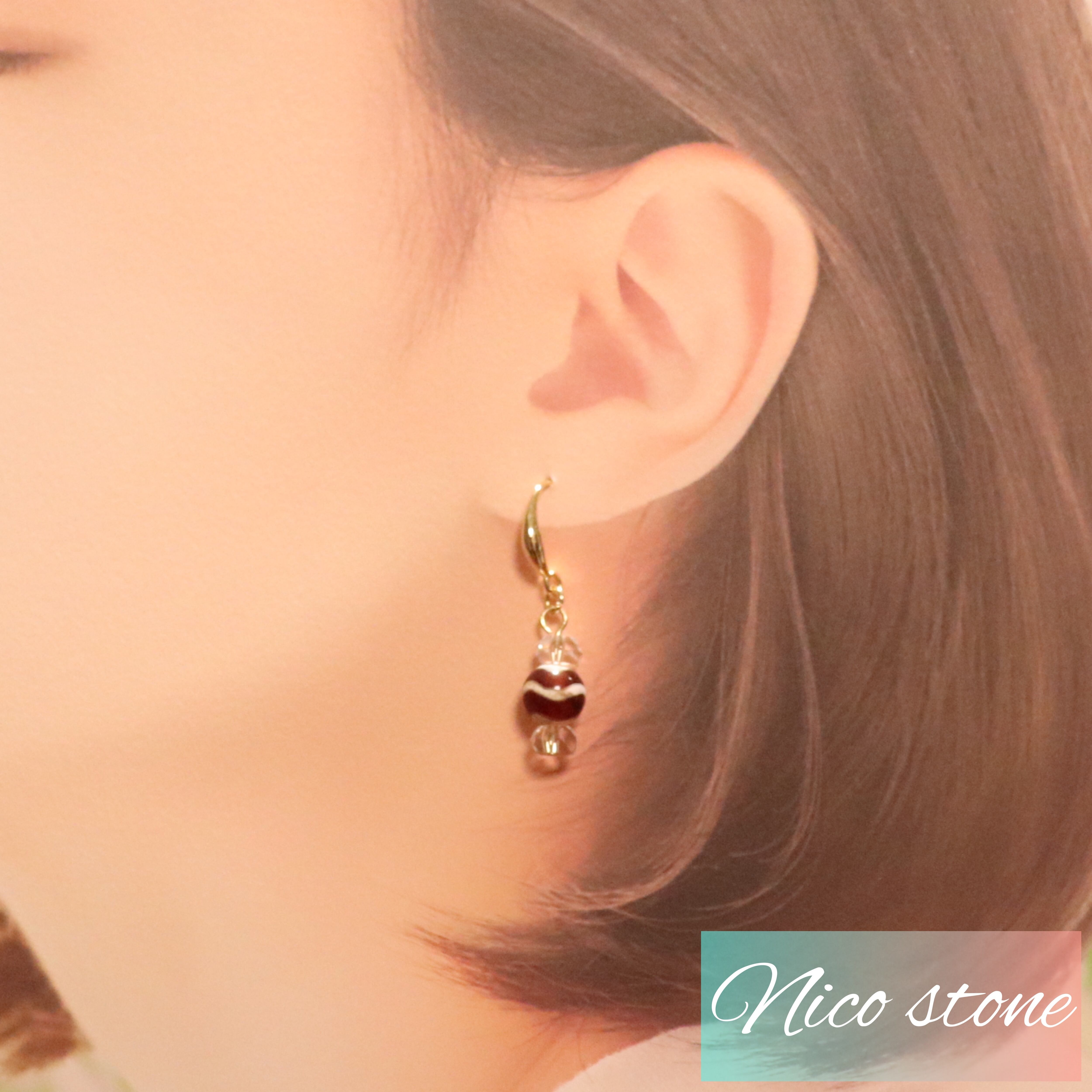 虎牙水紋天珠ピアス|願望達成、金運上昇のお守りに
