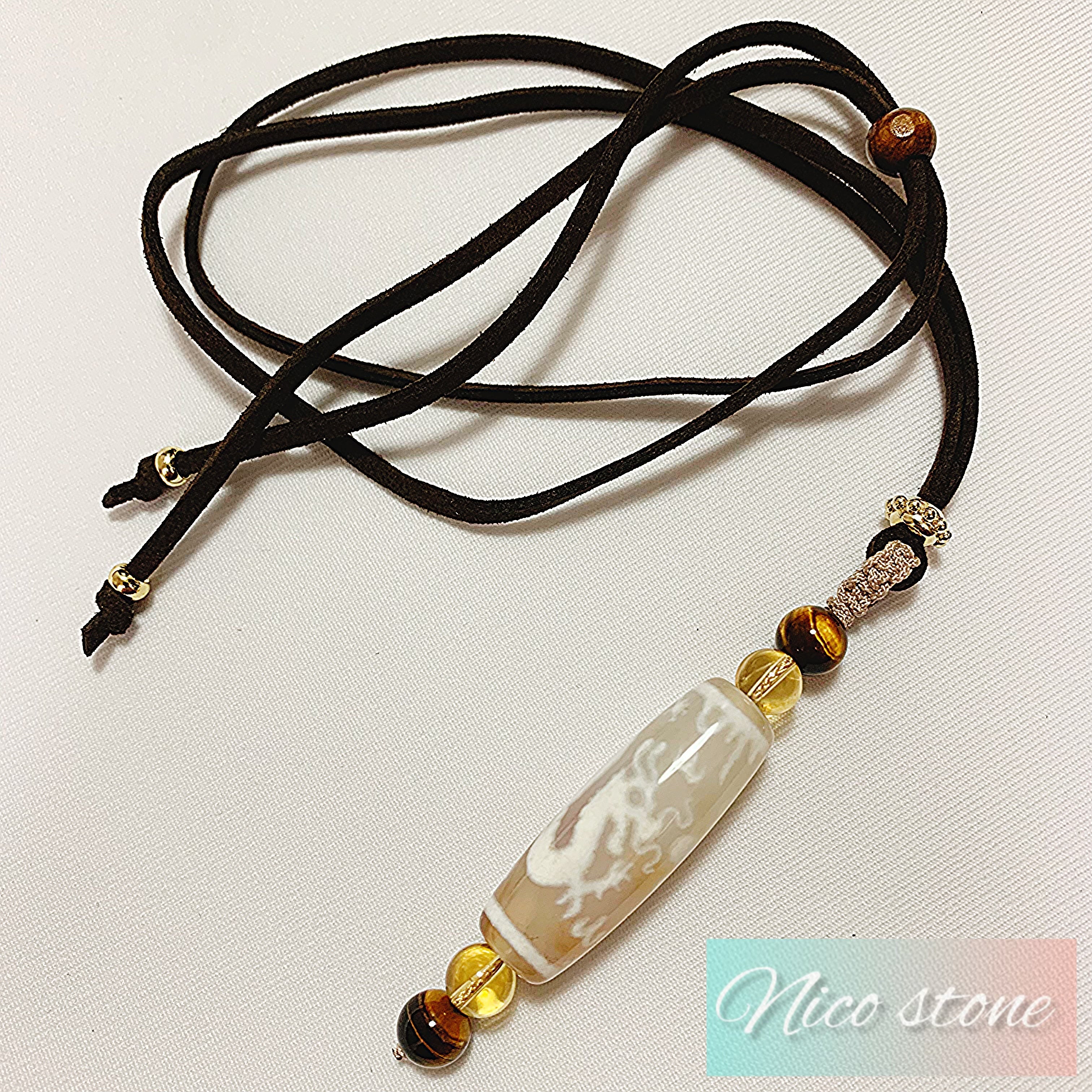 龍眼天珠(高級龍紋天珠)約11x25mm